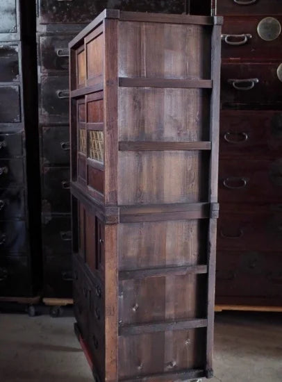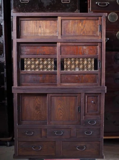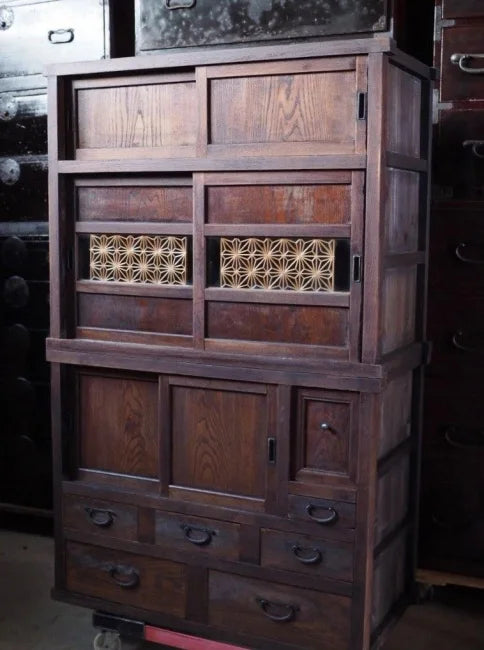beautiful antique Mizuya chest of drawers from the Meiji period with kumiko work. 100 years old