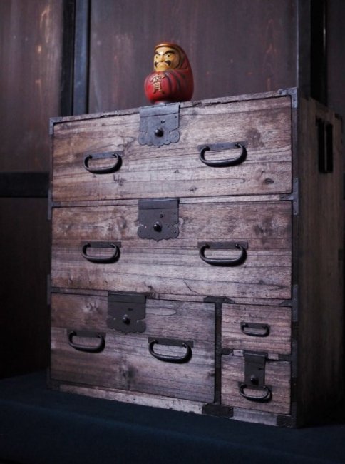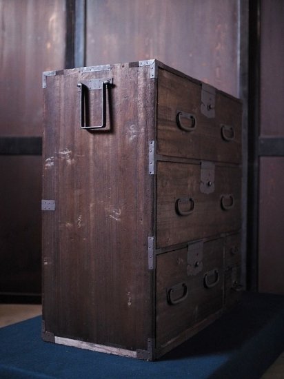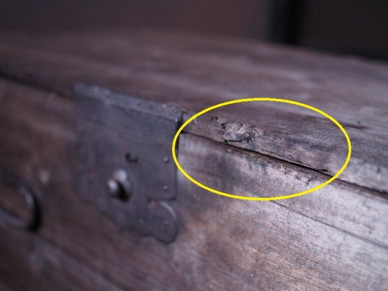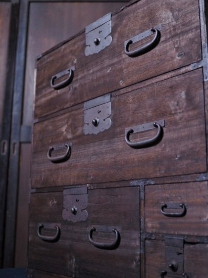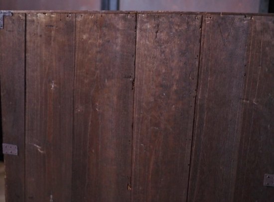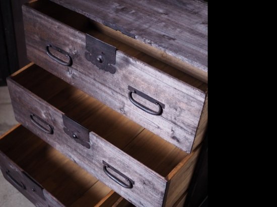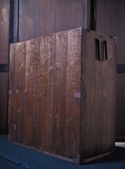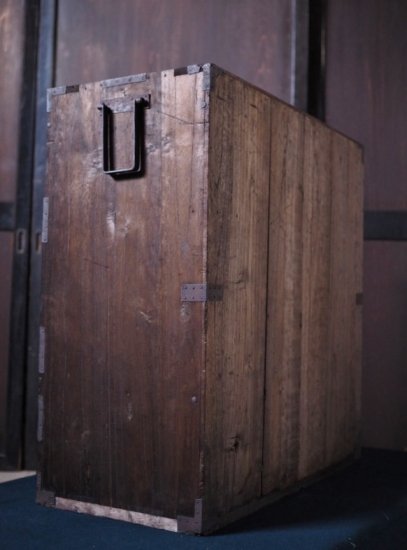 A century-old antique chest, crafted from weathered paulownia in the 1880s-90s. Its austere design and well-proportioned size lend a unique charm that seamlessly fits into modern living spaces