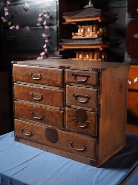 A lovely antique chest of drawers made of chestnut wood from the Meiji period