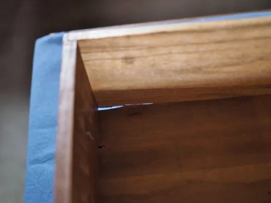 It has beautiful grain. Perfect for storing small items. There is a stain inside the drawer. There is no key.