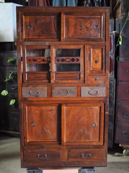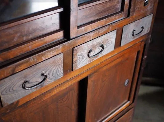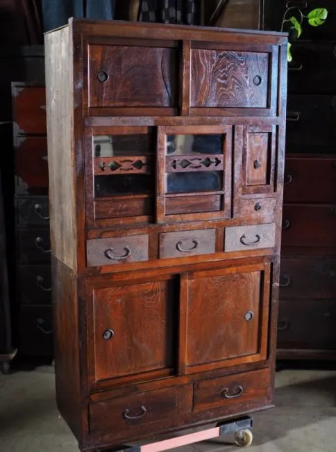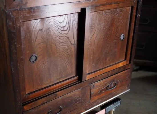 A popular antique two-tiered mizuya chest of drawers from the Taisho to early Showa era.
