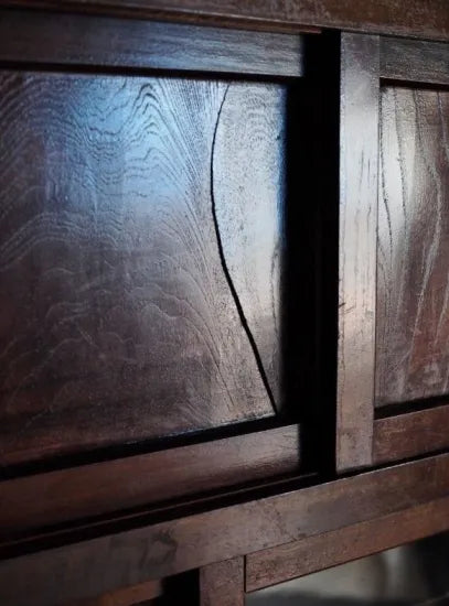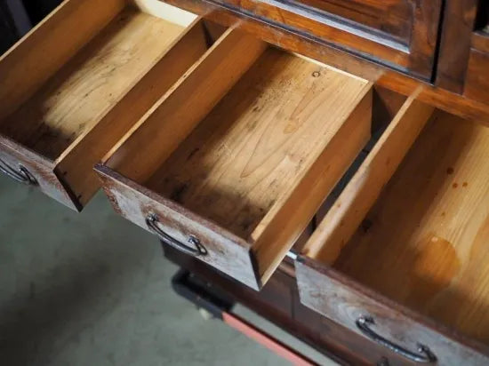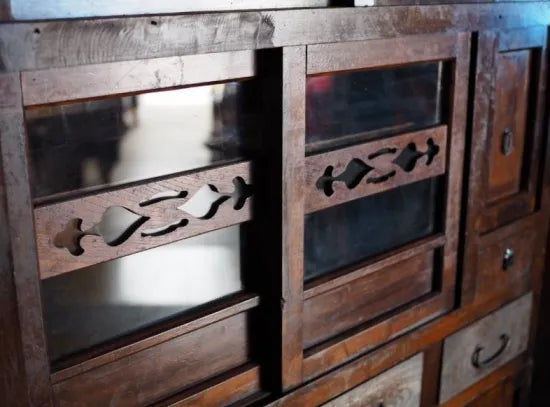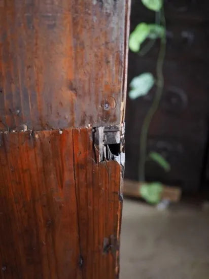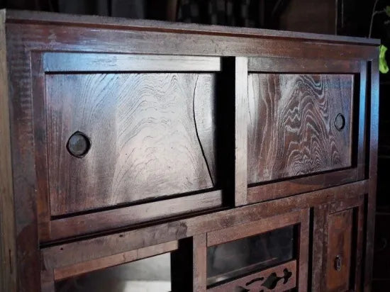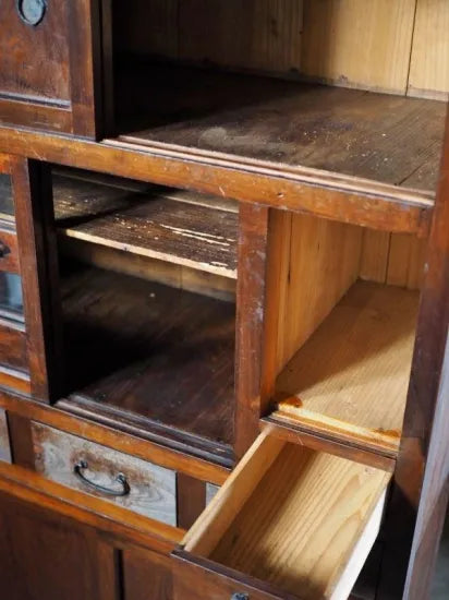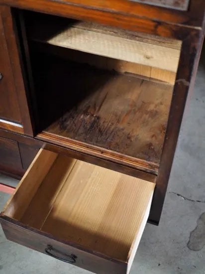 This is an easy-to-use mizuya chest of drawers, measuring just three feet wide. It has a lovely, aged look. Due to chipping, deterioration, and signs of repair, we are selling it at a low price.