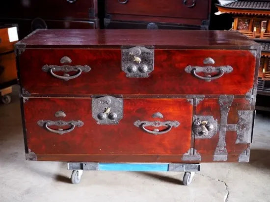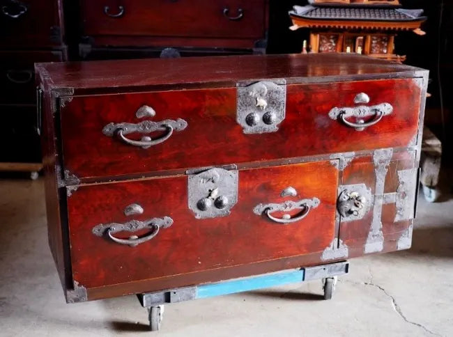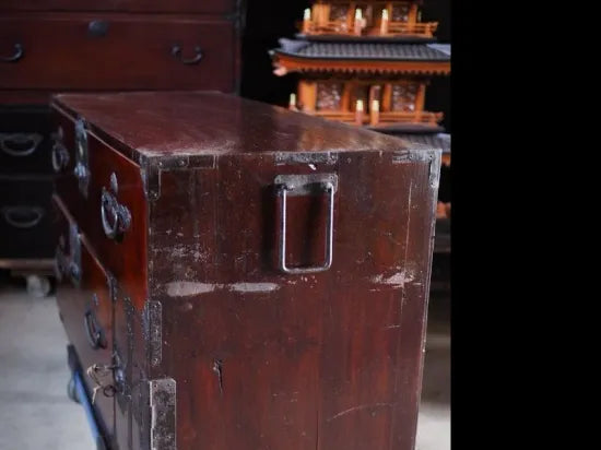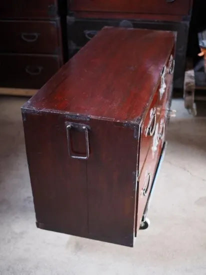 Antique lowboard made of Japanese zelkova wood from the Meiji period