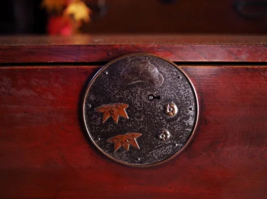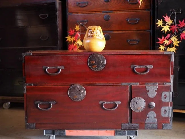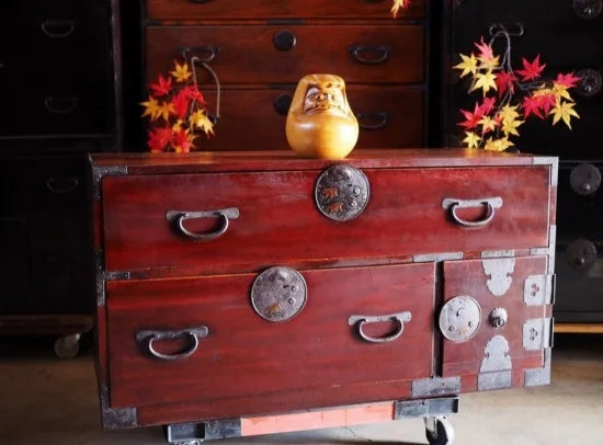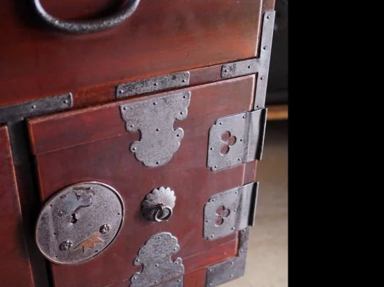 Antique lowboard with brass fittings, Nihonmatsu Tansu, Taisho era