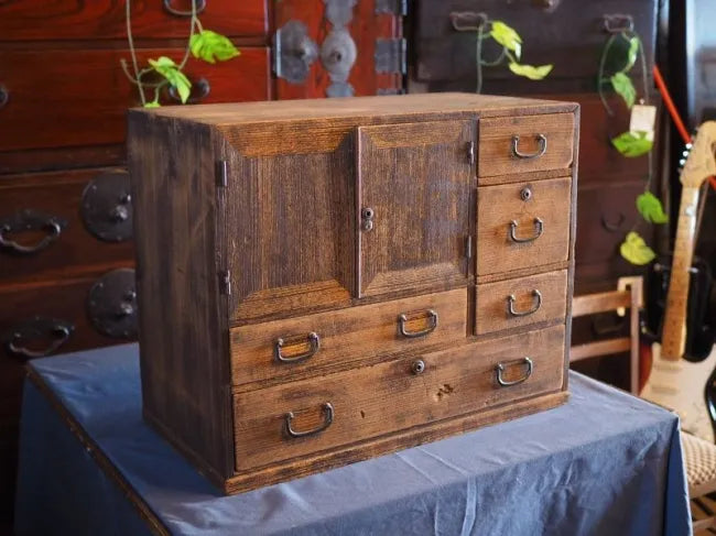 Antique small chest of drawers made entirely of paulownia wood from the Taisho to early Showa periods.
