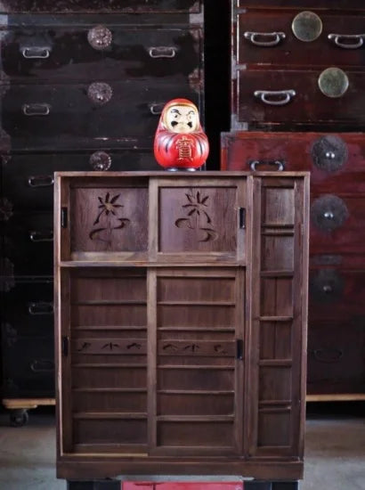 The front is made of solid black persimmon boards. Black persimmon is a rare material today. It is a small but well-made tea chest.