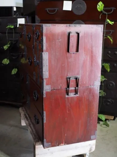 Antique Yonezawa chest of drawers, upper and lower set, from the Meiji to Taisho eras.