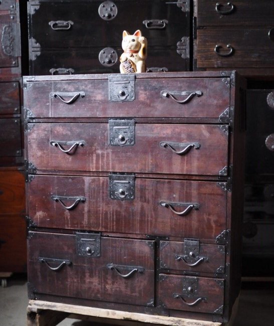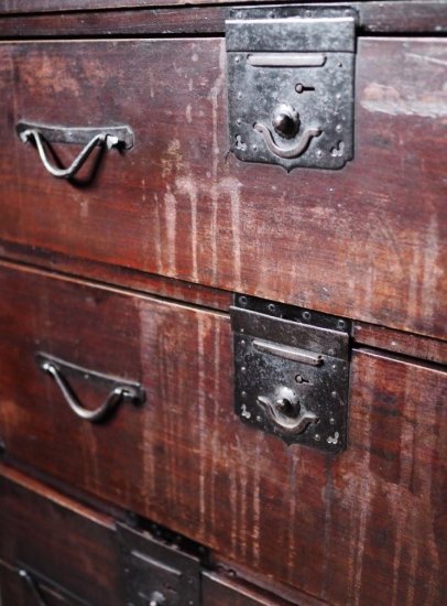 Edo period wardrobe chest with a withered taste, antique chest, Edo period