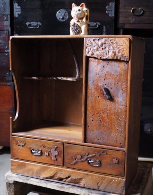 Retro decorative shelf composed of natural wood, early Showa period. This is a tasteful item composed with the natural wood flavor as it is.