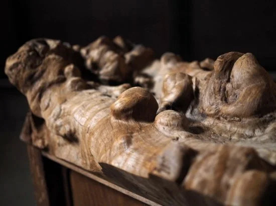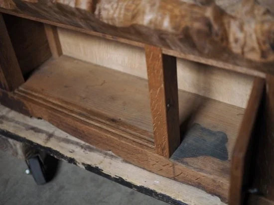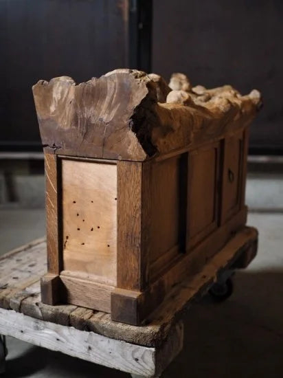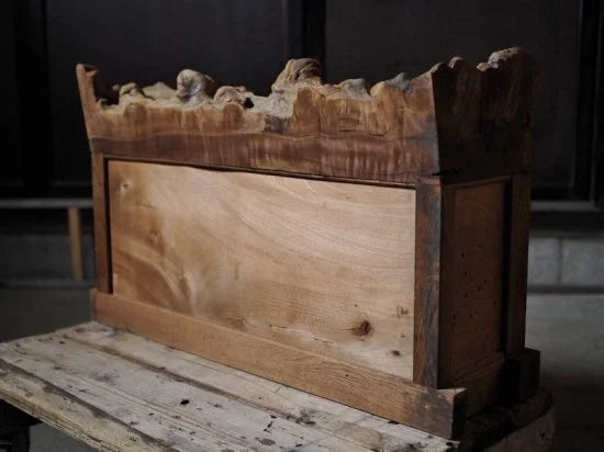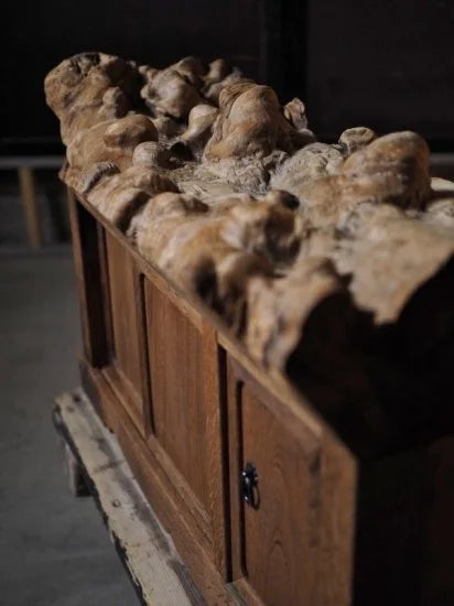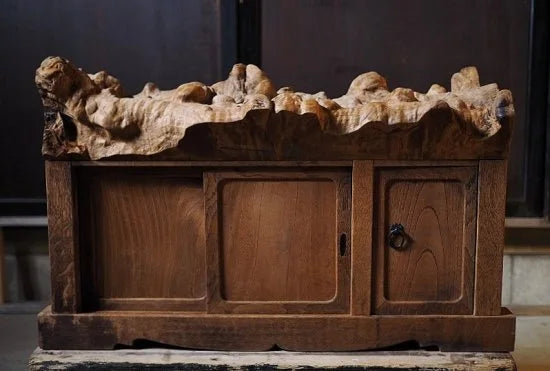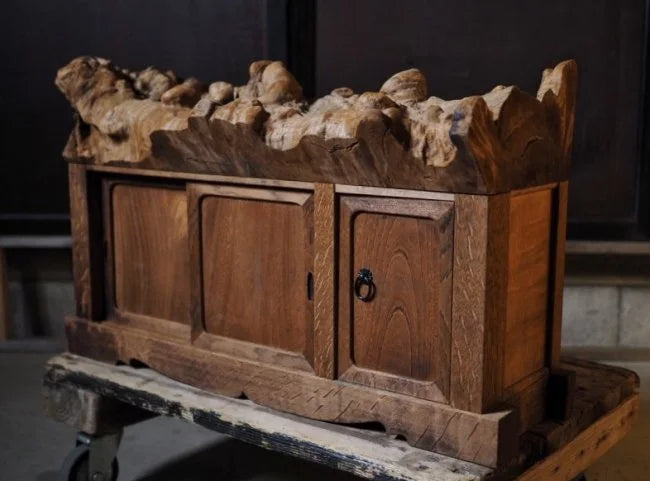 Lowboard with Oak Frame, Zelkova Sliding Doors, and Horse Chestnut Top.