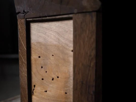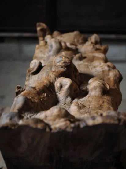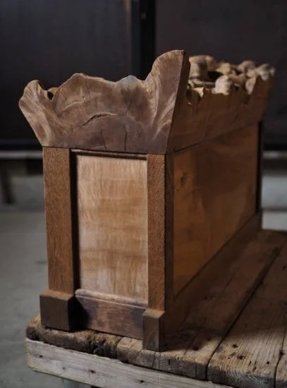 Unprecedented design with a rugged, natural wood top exuding a distinctive atmosphere.